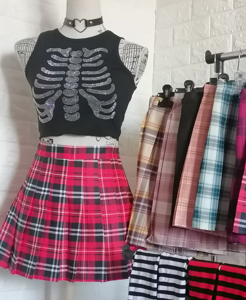 Faldas Plisadas Cuadrille, juveniles estilos kawaii, egirl, dark